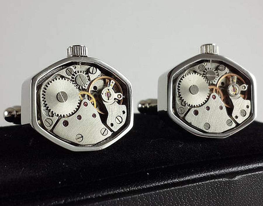 Highly unusual round mechanical clockwork cufflinks, with genuine moving parts. These cufflinks from Vyconic are...