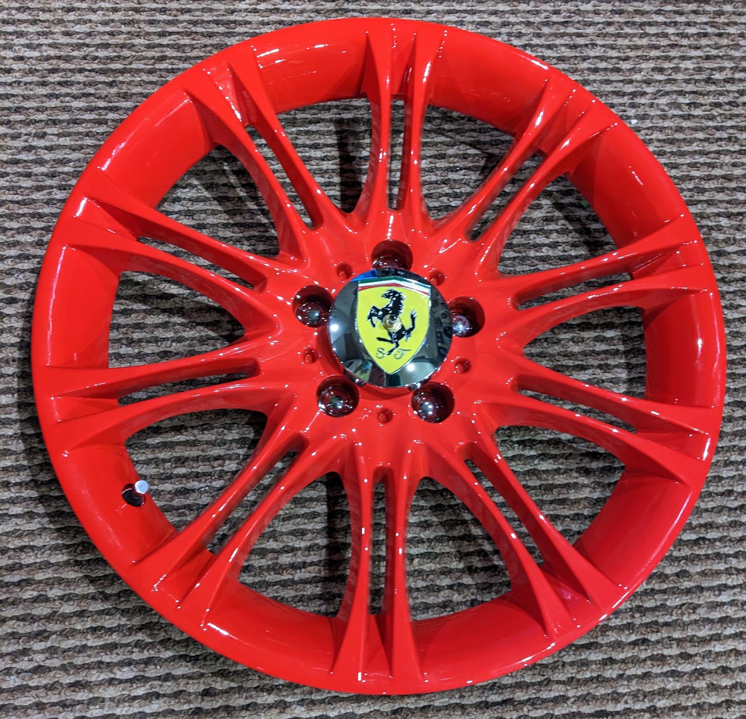 This genuine alloy wheel has been expertly cut down, refinished, and resprayed to create a stunning wall clock. Featuring a beautiful Ferrari badge and finished in iconic Ferrari red, it makes a truly unique statement piece.