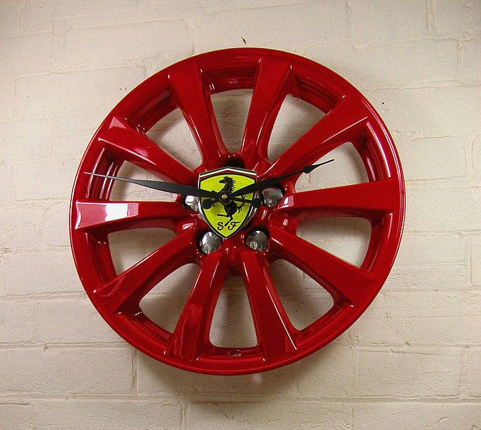 Alloy Wheel upcycled to stunning Ferrari Wheel wall clock