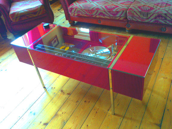 This is the coolest iPod /streaming / Bluetooth system you can buy. The table has been retrofitted with a state-of-the-art multimedia player to play all your favourite music with modern sound quality but the coolest retro styling. These pieces truly are incredible. This piece was featured on Channel 4's Four Rooms tv show and ITV's Soapstar superstar. It then went on to sell in Selfridges.