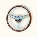 The wheel is typically found in E-Type Jaguars, MGs, Aston Martins and various classic sports cars and as such the clocks can be personalised to any car brand of your choosing, feel free to contact me and let me know your preferred option.