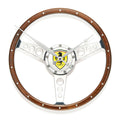 Classic car polished wooden steering wheel clock. Customers choice of car badge.